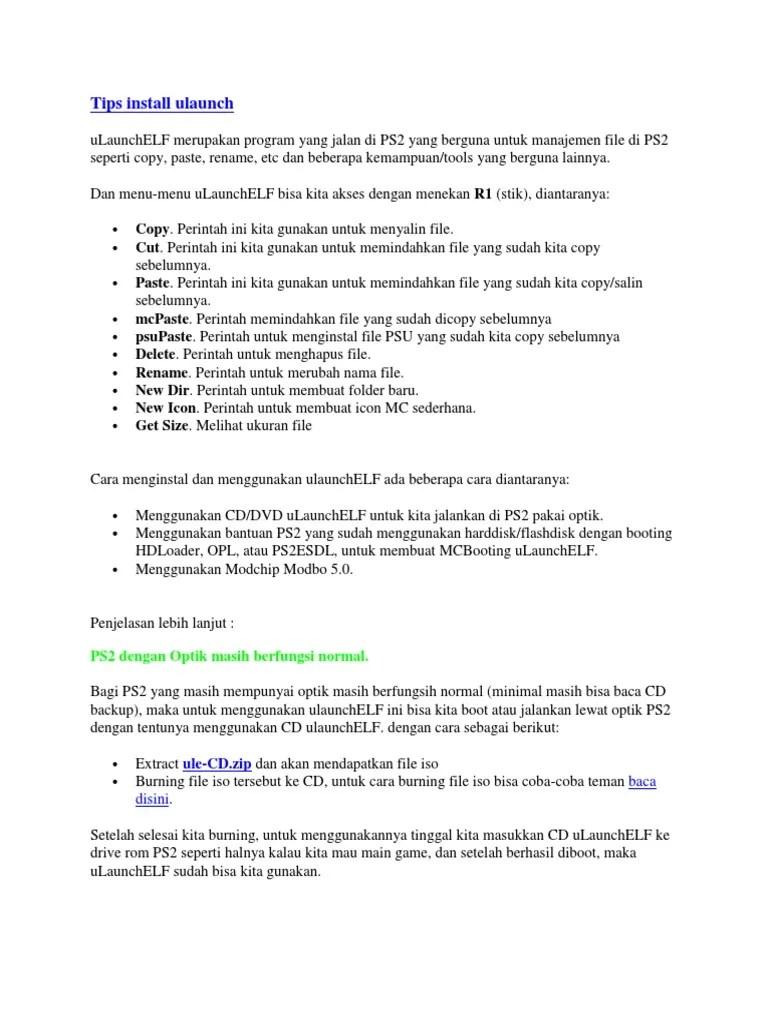 Rangkuman cara pasang hardisk external di ps2 fat dan ps2 slim. Setelah itu copy system pengaturan modchip modbo 5.0 pada flashdisk dengan cara yang sudah saya. Penting !!!!!ulaunch iso berguna untuk ps2 yg tidak punya ulaunch bisa pake cara ini untuk bisa masukvideo ini direkam. Voller zugriff auf memorycard, cd/dvd, hdd,. Tentunya agan harus beli dulu dan memasangnya ke dalam konsol ps2 (kalo ga bisa pasang, bawa ke tempat service ps2) harganya cukup terjangkau rp.38.000 belum sama pasang (ane belinya di tokomjstation.com) cara pasang ulaunch elf sabtu, 12 desember 2015. Cara pasang ulaunch dvd : Tentunya agan harus beli dulu dan memasangnya ke dalam konsol ps2 (kalo ga bisa pasang, bawa ke tempat service ps2) harganya cukup terjangkau rp.38.000 belum sama pasang (ane belinya di tokomjstation.com) Masukkan ulaunch dvd game ke ps2 dan biarkan hingga load. Cara pasang ulaunch elf sabtu, 12 desember 2015. Tapi, ada cara lain yaitu pake usbutil: Ulaunch merupakan program yang jalan di ps2 yang berguna untuk manajemen file di ps2 seperti copy, paste, rename, etc dan beberapa kemampuan/tools yang berguna lainnya. Imgburn atau software burn yang lain ulaunch_cd ulaunch_dvd kaset cd/dvd kosong. Untuk mendownload atau mengetahui ulaunch sakti mandraguna yang support di semua seri ps2 tanpa matrix dan mc boot.